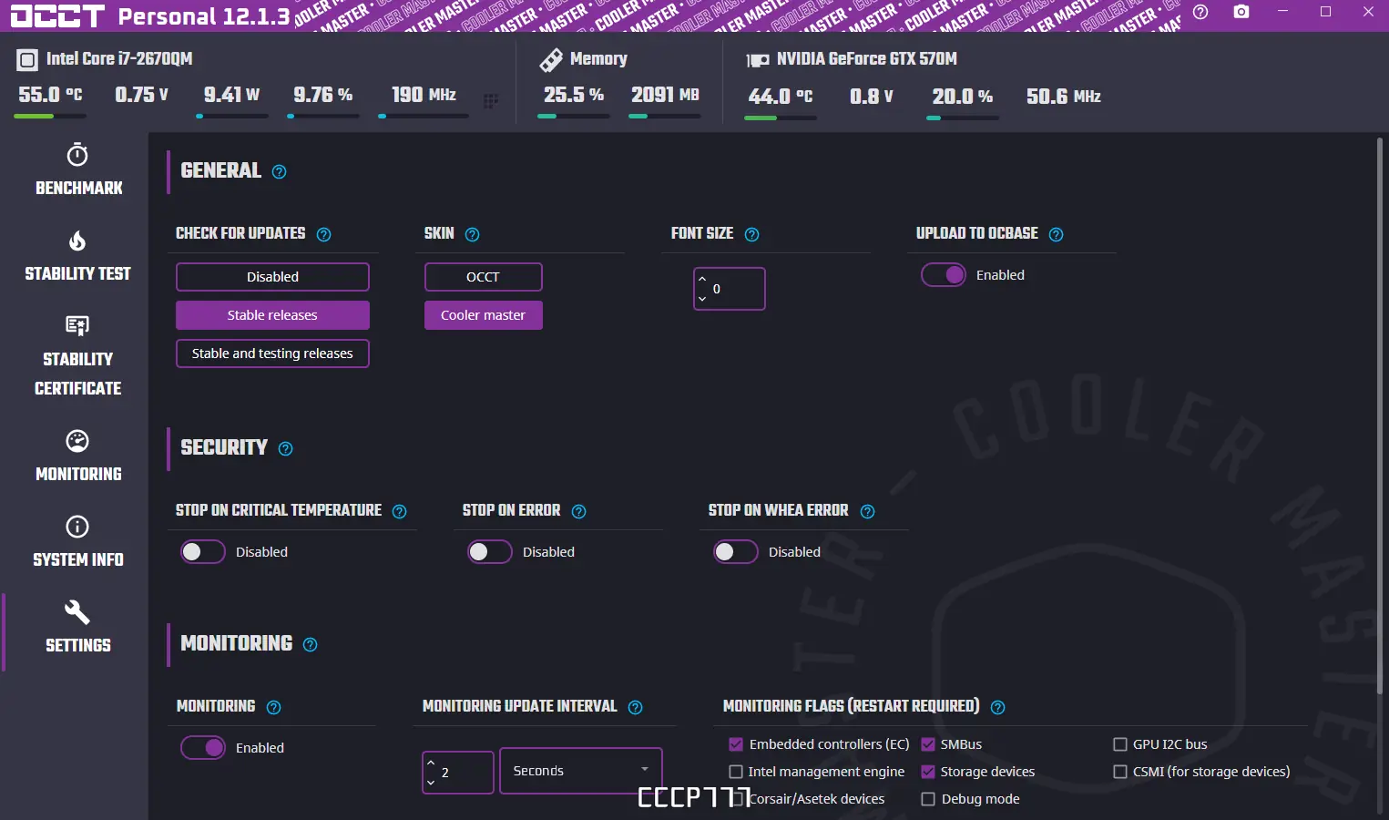 - Наличие двух тем оформления интерфейса — стандартной и фирменной от Coolermaster