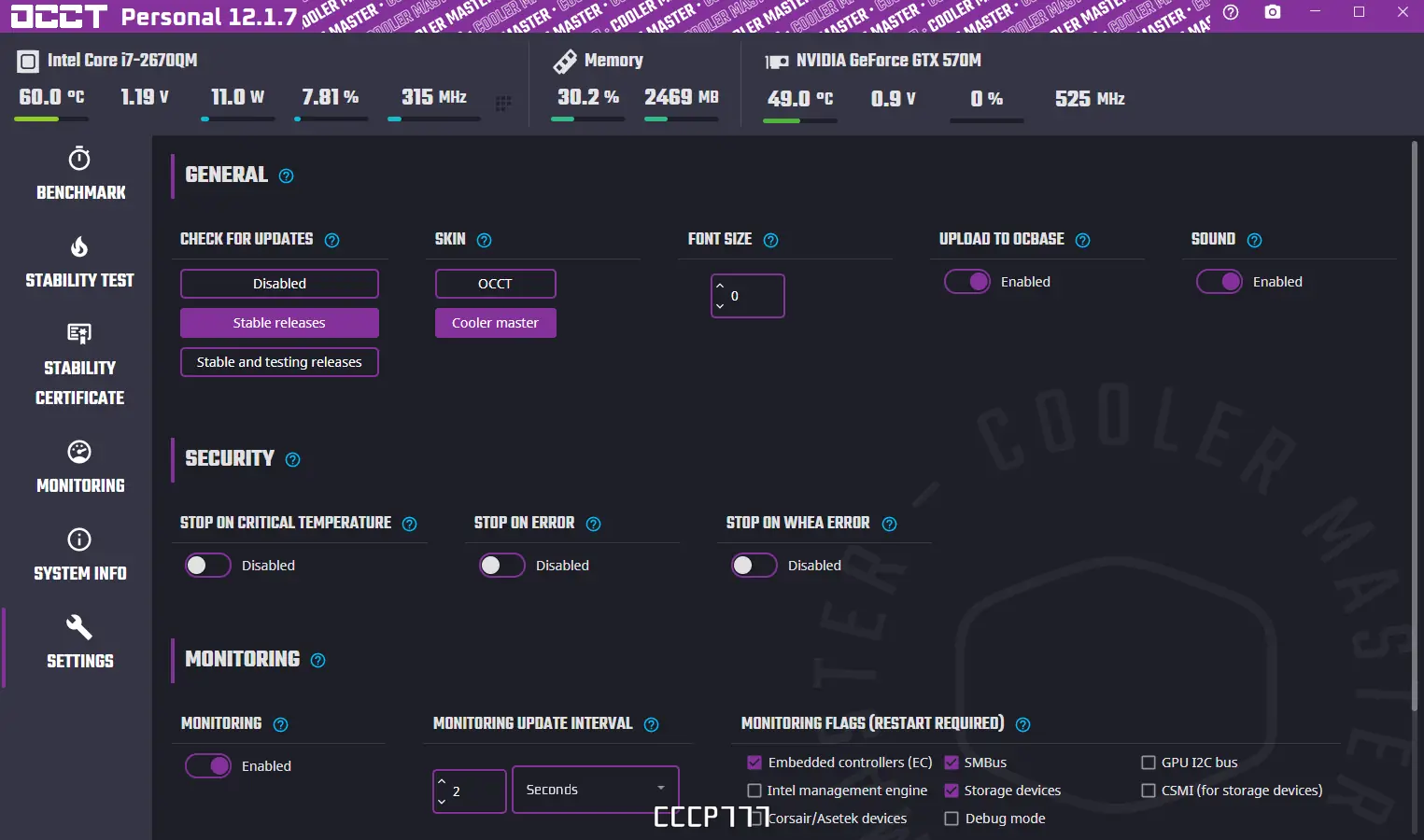 - Два режима оформления интерфейса — стандартный и тема от Coolermaster