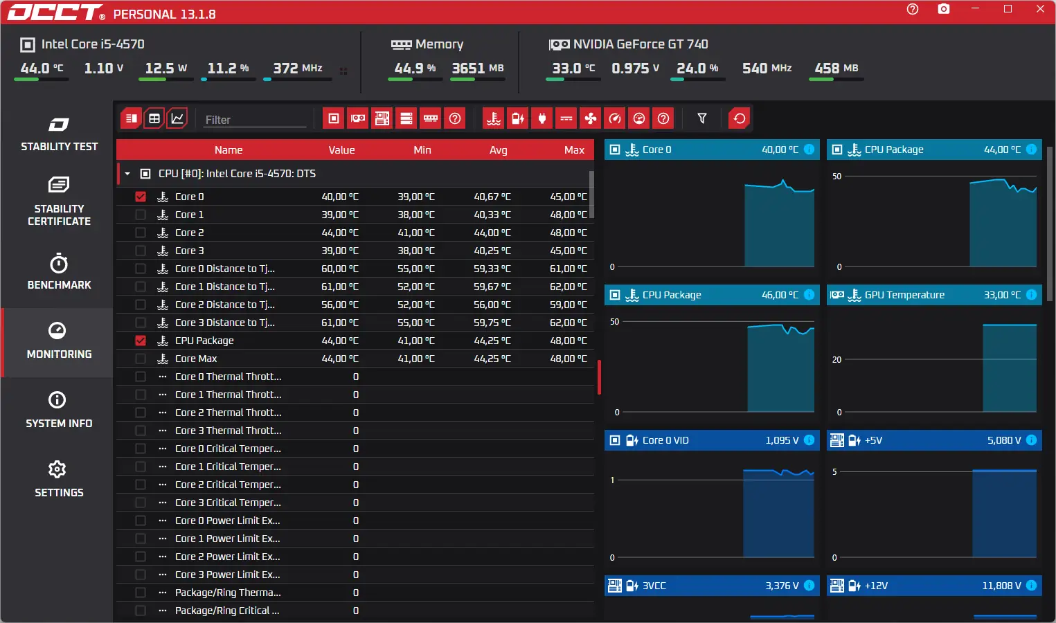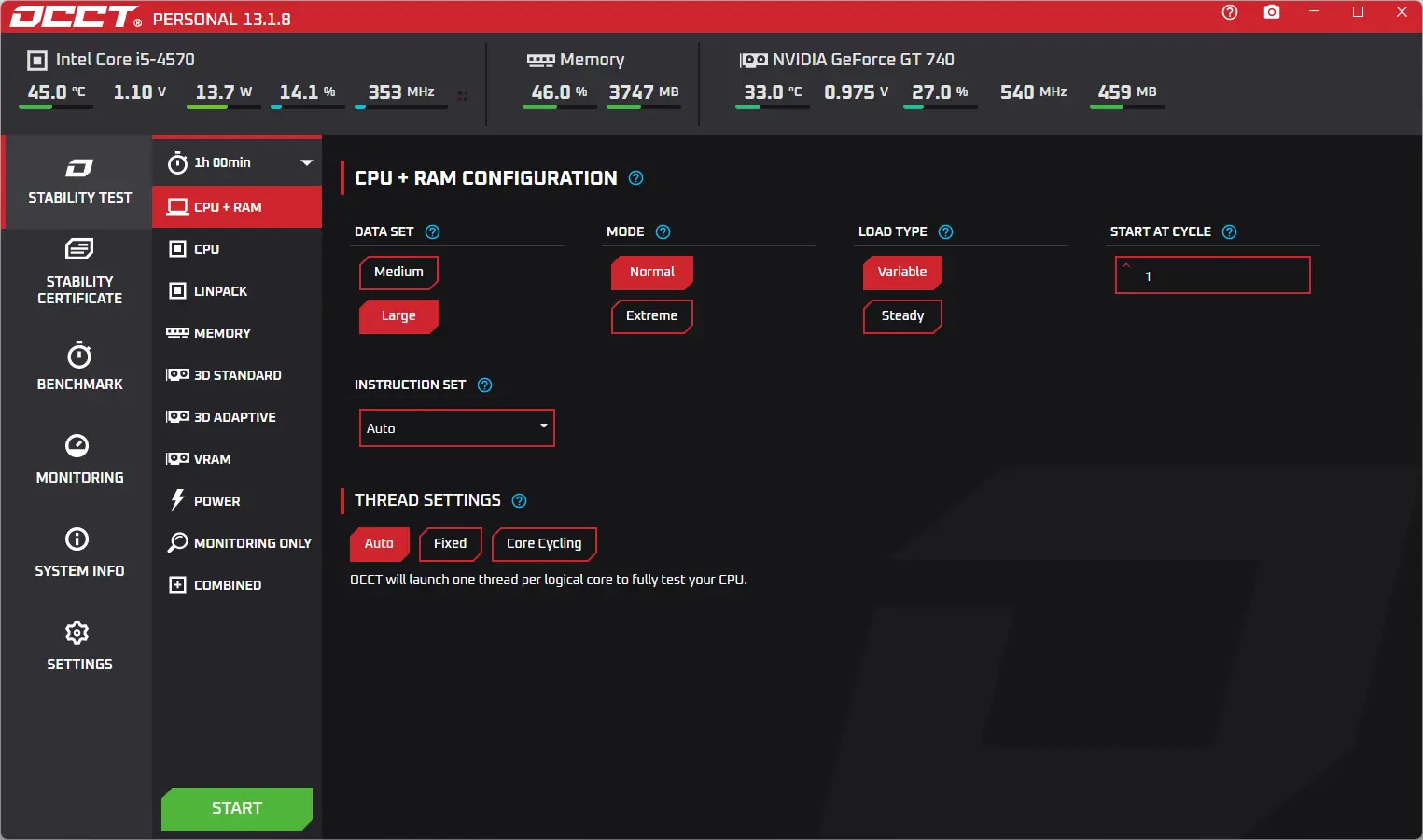 OCCT — это инструмент для стресс-тестирования компьютера, ориентированный на проверку стабильности работы центрального процессора, оперативной памяти и видеокарты под высокой нагрузкой. Программа отображает результаты в виде наглядных графиков и позволяет контролировать температуру, напряжение и другие параметры компонентов системы.