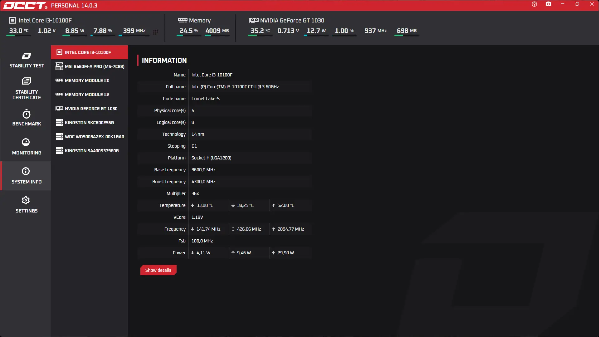 OCCT — это мощная утилита для тестирования стабильности компьютерной системы, ориентированная на глубокую диагностику центрального процессора, оперативной памяти и видеокарты под высокой нагрузкой. Программа позволяет выявить потенциальные сбои в работе оборудования, оценить эффективность системы охлаждения и проверить надёжность разгона компонентов. Результаты теста отображаются в виде наглядных графиков, что упрощает анализ производительности и термальных показателей.