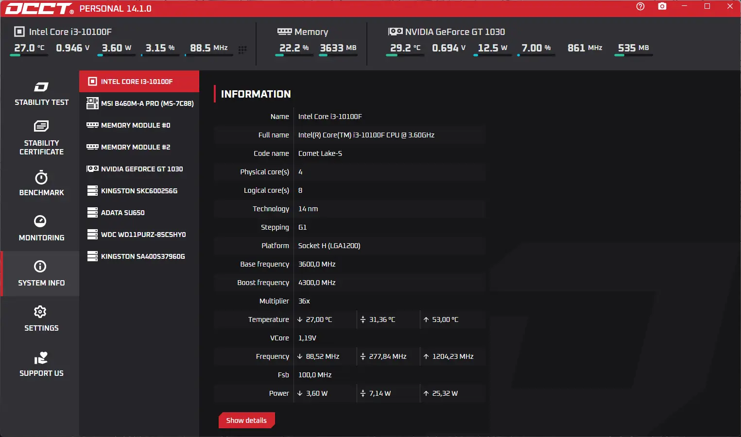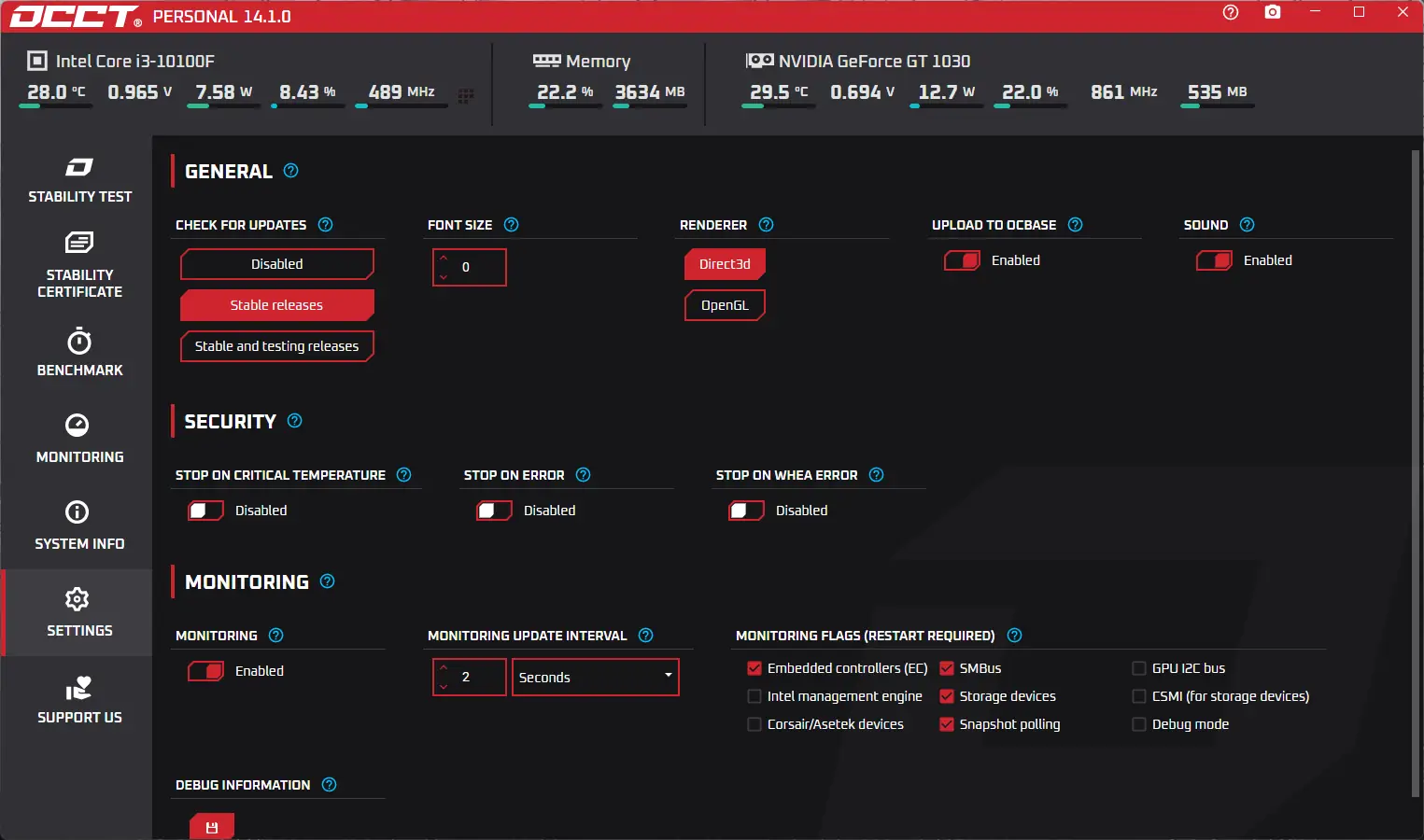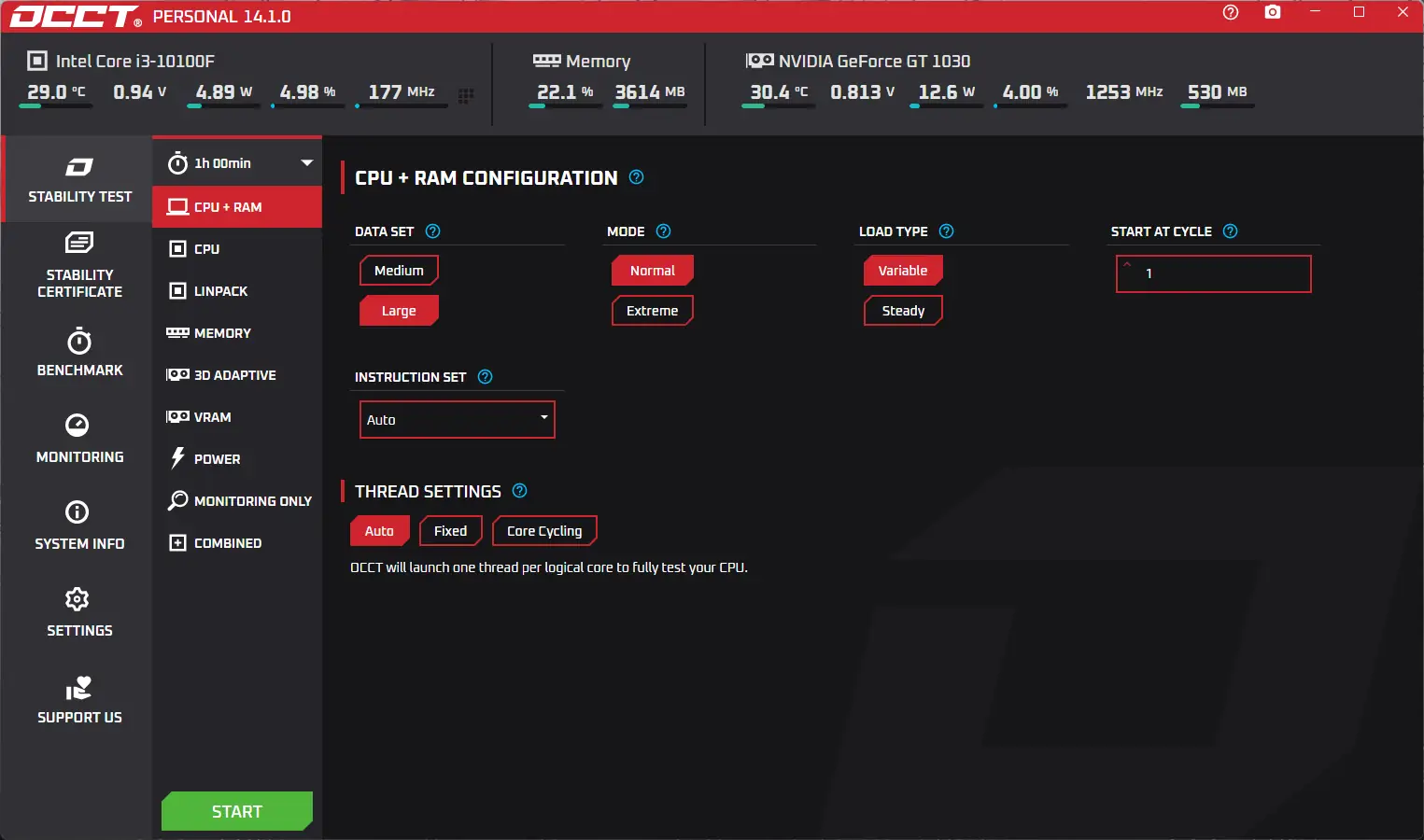OCCT — это утилита для тестирования стабильности работы компьютера, ориентированная на глубокую диагностику центрального процессора, оперативной памяти и видеокарты. Программа создаёт высокую нагрузку на компоненты системы, позволяя выявить перегрев, ошибки и нестабильность в работе оборудования. Результаты теста отображаются в виде наглядных графиков, что упрощает анализ производительности и термальных характеристик.