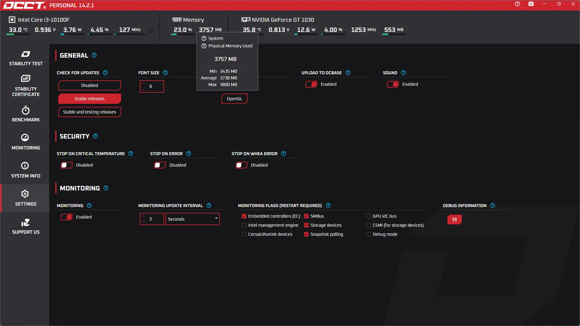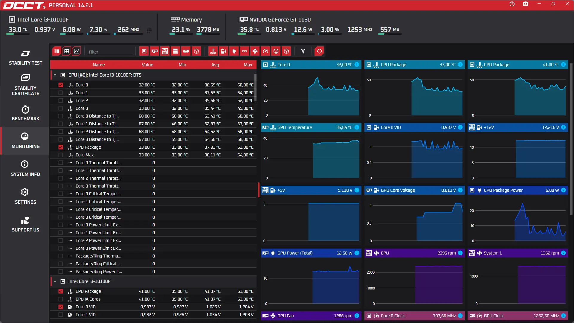 - Мониторинг температуры, напряжения и частоты в реальном времени