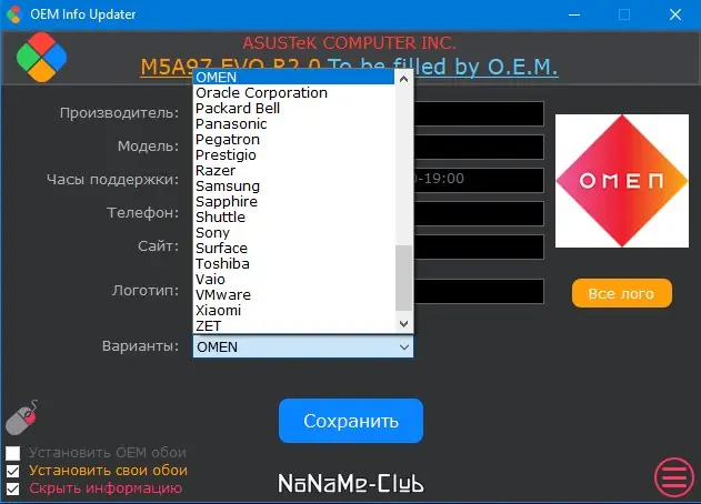 Описание OEM Info Updater