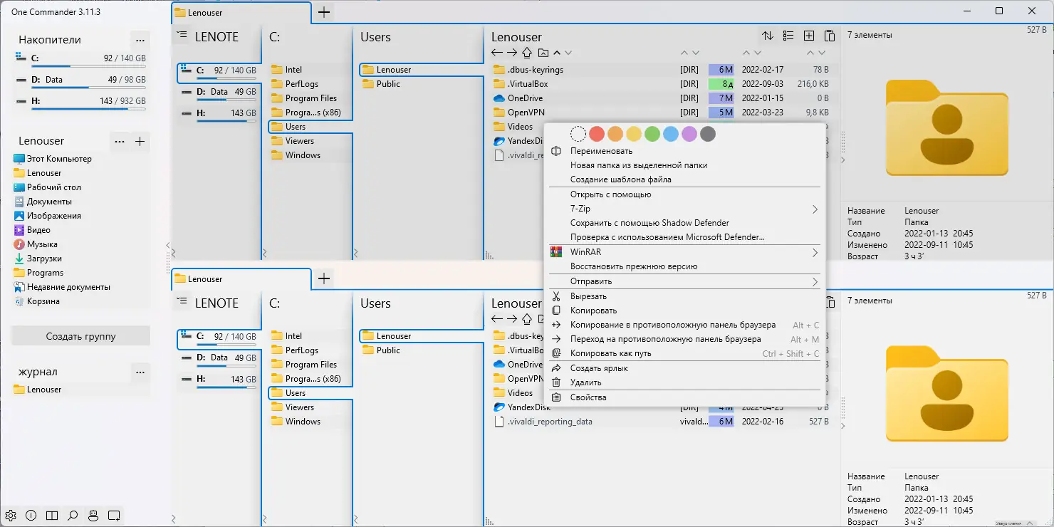 One Commander не стремится лишь улучшить внешний вид проводника — он меняет саму логику взаимодействия с файлами.