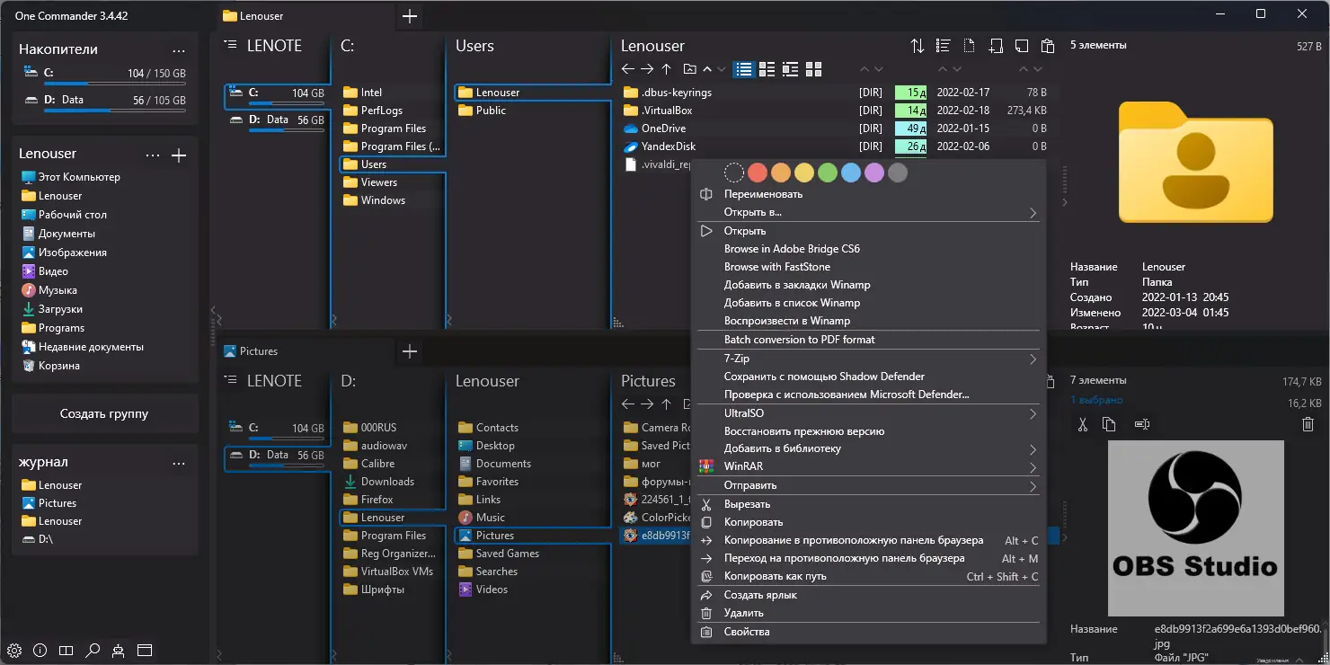 One Commander V3 — современный файловый менеджер для операционных систем Windows, сочетающий в себе мощные функции двойных панелей, вкладок, цветовых тегов и встроенного предварительного просмотра. Программа оптимизирована для эффективной работы с файлами и папками, обеспечивая высокую скорость навигации и удобное управление данными без рекламы и с минимальными системными требованиями.