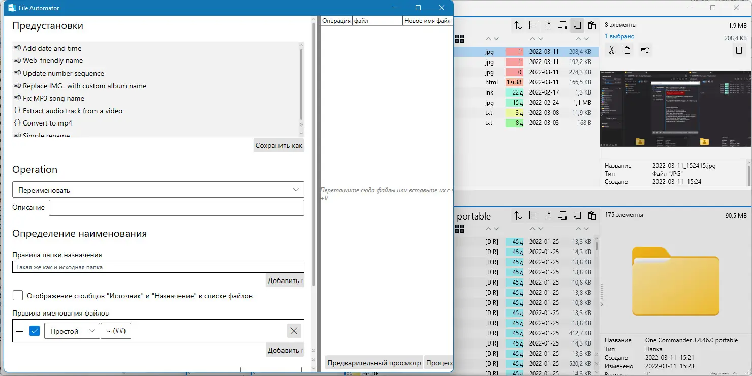 - Поддержка регулярных выражений при массовом переименовании файлов