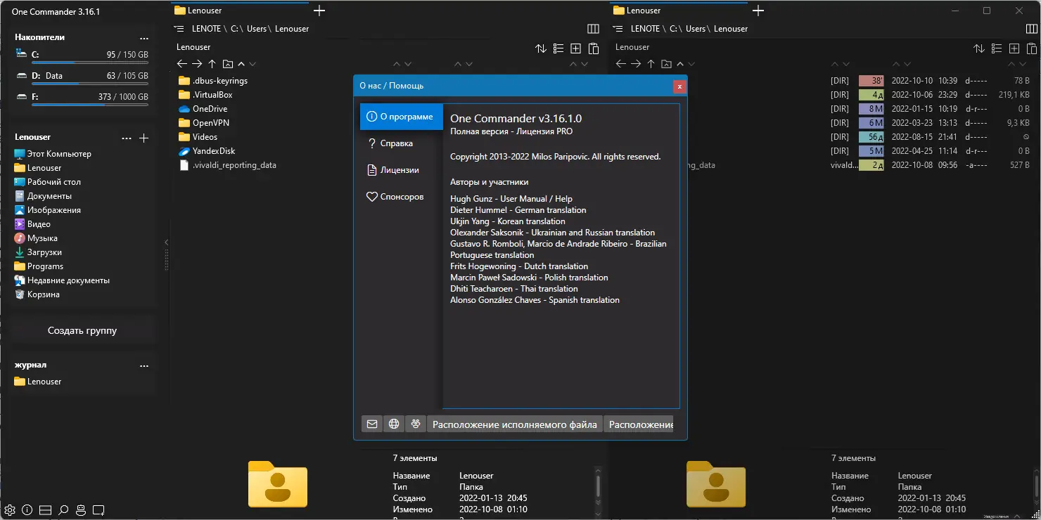 One Commander сочетает в себе мощные функции и минималистичный интерфейс, что делает его удобным как для новичков, так и для продвинутых пользователей. Программа активно использует современные подходы к визуализации данных, включая относительные даты, цветовые теги и темизацию. При этом она остаётся легковесной и не нагружает систему, что важно при работе на устройствах со средними характеристиками. Поддержка портативного режима позволяет запускать приложение с флешки без установки.