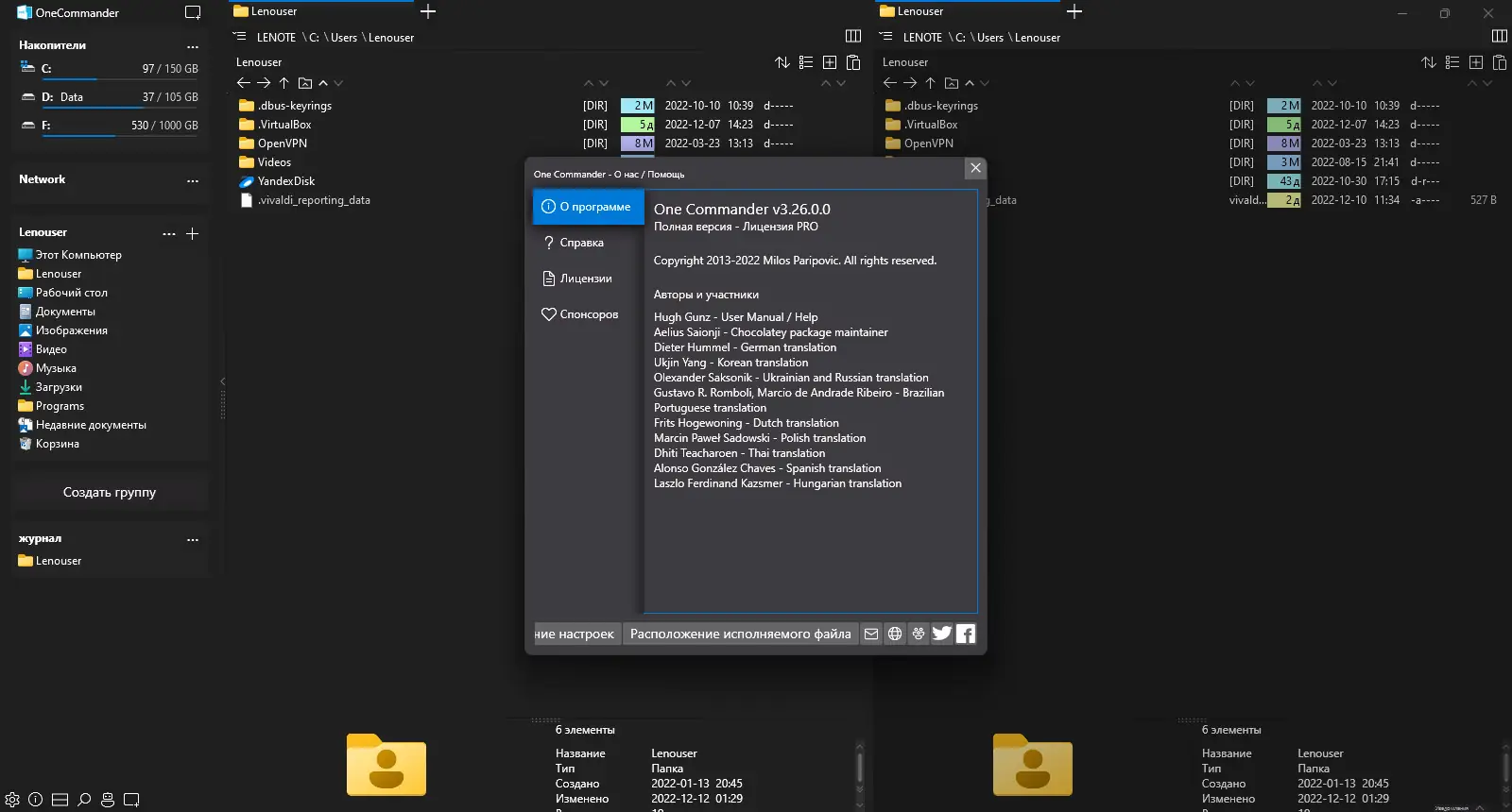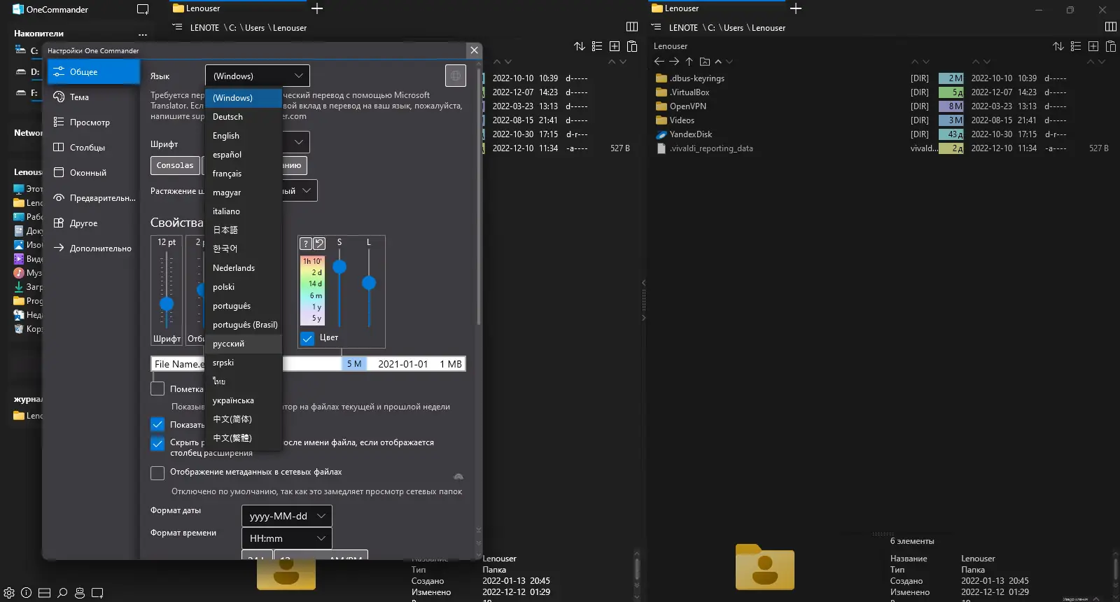 - Двухпанельный режим, напоминающий классические файловые менеджеры, но с современными улучшениями