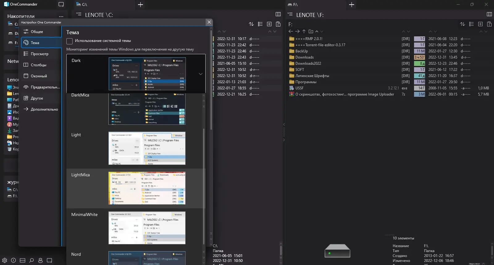 - Гибкая система тем и цветового кодирования файлов улучшает визуальную ориентацию в каталогах.