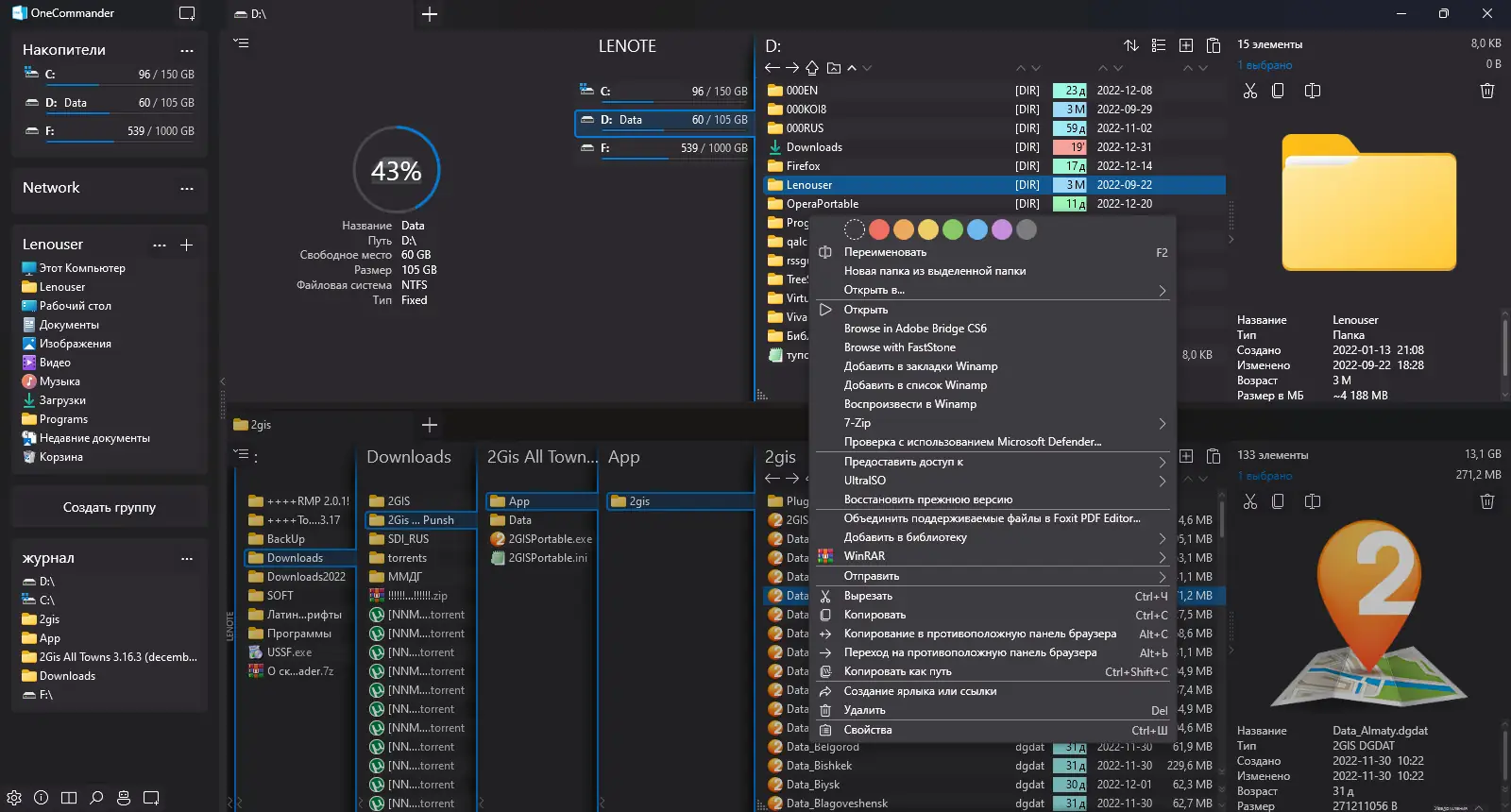 One Commander V3 — это современный файловый менеджер для Windows, сочетающий в себе двойные панели, вкладки, колоночную навигацию и встроенный просмотр файлов. Программа оптимизирует управление файлами, заменяя стандартный проводник эффективным инструментом с интуитивным интерфейсом и расширенными возможностями.