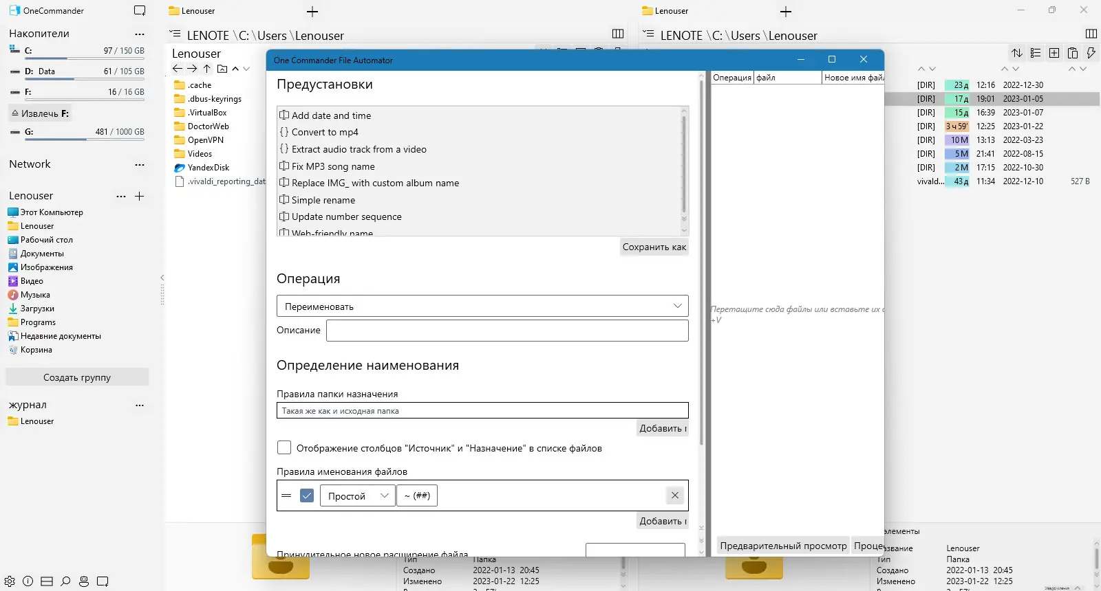 Использование программы начинается с освоения интерфейса, в котором каждая панель отображает содержимое каталога, а переход по вложенным папкам происходит плавно, без необходимости открывать дополнительные окна. Пользователь может быстро фильтровать содержимое, вводя часть имени файла, после чего список автоматически сужается до соответствующих элементов. Для массовых операций доступен буфер задач, куда можно добавлять файлы из разных папок, а затем выполнять копирование или перемещение в указанную директорию единым действием. Регулярные выражения позволяют переименовывать файлы по сложным шаблонам, а встроенный менеджер задач помогает отслеживать ход длительных операций. Поддержка предварительного просмотра изображений и возможность их конвертации прямо в интерфейсе экономят время и упрощают рутинные действия.