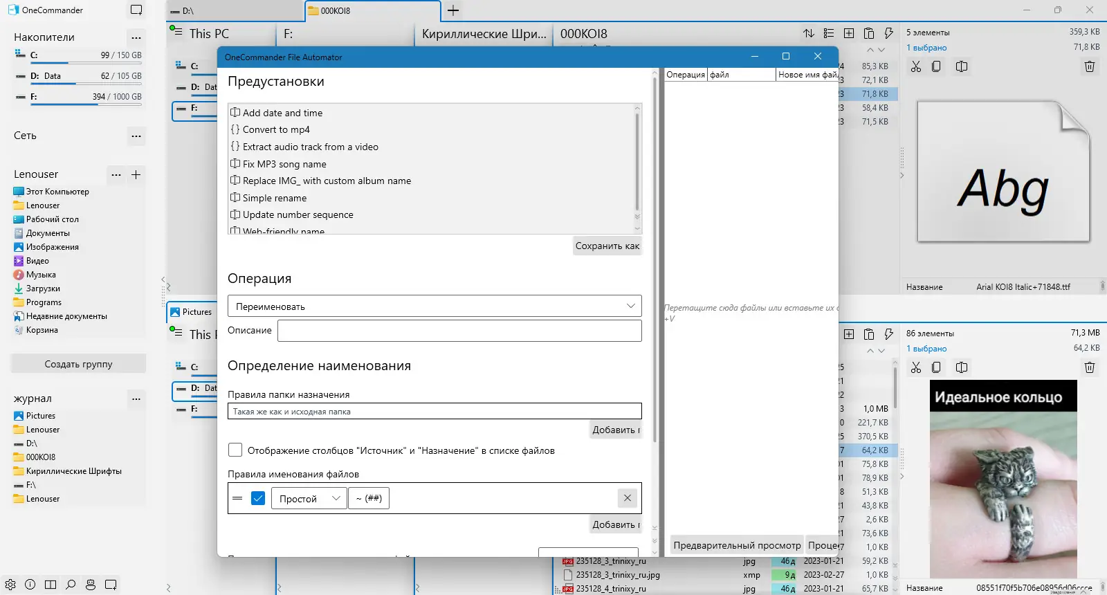 При первом запуске пользователь видит две параллельные панели, каждая из которых отображает содержимое отдельной директории. Перемещение между папками осуществляется как с помощью мыши, так и с клавиатуры — достаточно начать вводить имя файла или папки, и список автоматически фильтруется по введённым символам. Это особенно полезно при работе с большими каталогами, где ручной поиск занимает много времени. Для операций копирования и перемещения можно использовать буфер задач, позволяющий добавлять файлы из разных источников и выполнять действия пакетно. Функция переименования с поддержкой регулярных выражений даёт возможность массово изменять имена файлов по заданным шаблонам. Встроенный просмотр изображений поддерживает предварительный просмотр и базовое конвертирование форматов, что ускоряет обработку графики. Программа также включает в себя менеджер задач, отображающий текущие операции с файлами и позволяющий приостанавливать или отменять их при необходимости.