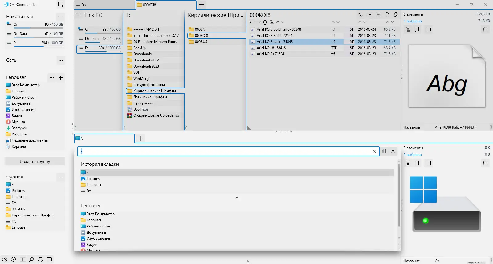 One Commander представляет собой альтернативу стандартному проводнику Windows, ориентированную на повышение производительности и удобства при работе с файловой системой. Разработчики не стремились просто скопировать интерфейс Finder или добавить вкладки к проводнику, а предложили принципиально новый подход к навигации и управлению данными. Программа поддерживает современные концепции, такие как цветовые теги, темы оформления и интеллектуальная фильтрация содержимого. Благодаря продуманной архитектуре, она легко справляется с большими объемами файлов и сложными структурами каталогов. Использование двух панелей позволяет быстро копировать, перемещать и сравнивать содержимое разных директорий без необходимости открывать множество окон. Наличие вкладок делает переключение между папками быстрым и интуитивно понятным.