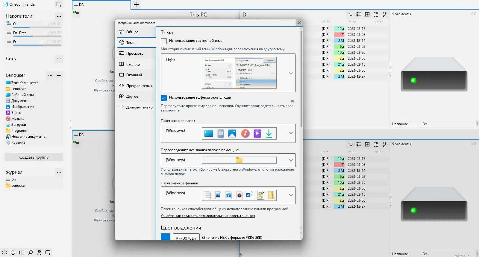 - Поддержка тем оформления, позволяющая персонализировать внешний вид интерфейса