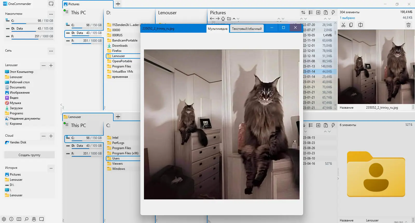 OneCommander выделяется на фоне других файловых менеджеров продуманной архитектурой и отсутствием избыточности в интерфейсе. Программа не перегружена функциями, которые редко используются, но при этом предоставляет мощные инструменты для тех, кто в них нуждается. Визуальная навигация, цветовое кодирование дат и поддержка тем делают работу с файлами более интуитивной. В то же время, из-за нестандартного подхода к интерфейсу некоторым пользователям может потребоваться время на адаптацию. Несмотря на высокую производительность, в редких случаях наблюдается задержка при работе с очень большими каталогами, особенно на медленных дисках.