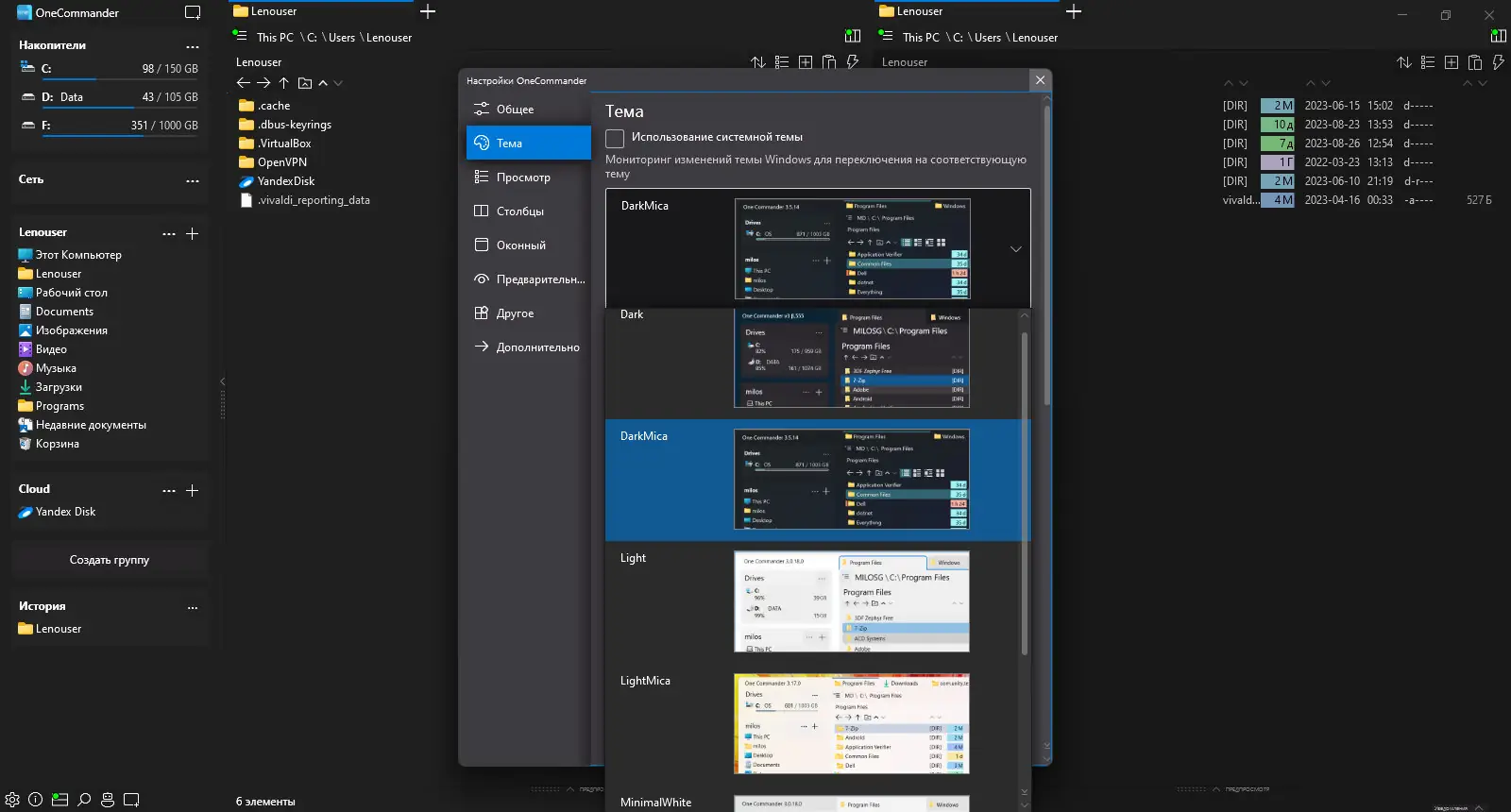 Работа с OneCommander