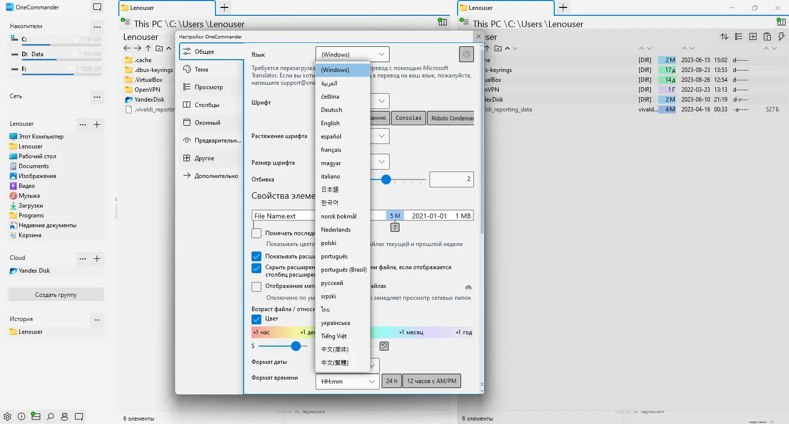 OneCommander сочетает в себе множество функций, которые делают его мощным инструментом для пользователей любого уровня. Программа не перегружена интерфейсом, но при этом предоставляет доступ к продвинутым возможностям, необходимым для сложных операций. Поддержка тем и персонализация цветовой схемы позволяют адаптировать внешний вид под личные предпочтения и условия освещения. Относительное отображение дат (например, «2 часа назад» или «вчера») помогает быстрее ориентироваться в сроках изменения файлов. Цветовое кодирование по диапазонам дат упрощает визуальный контроль над актуальностью данных.