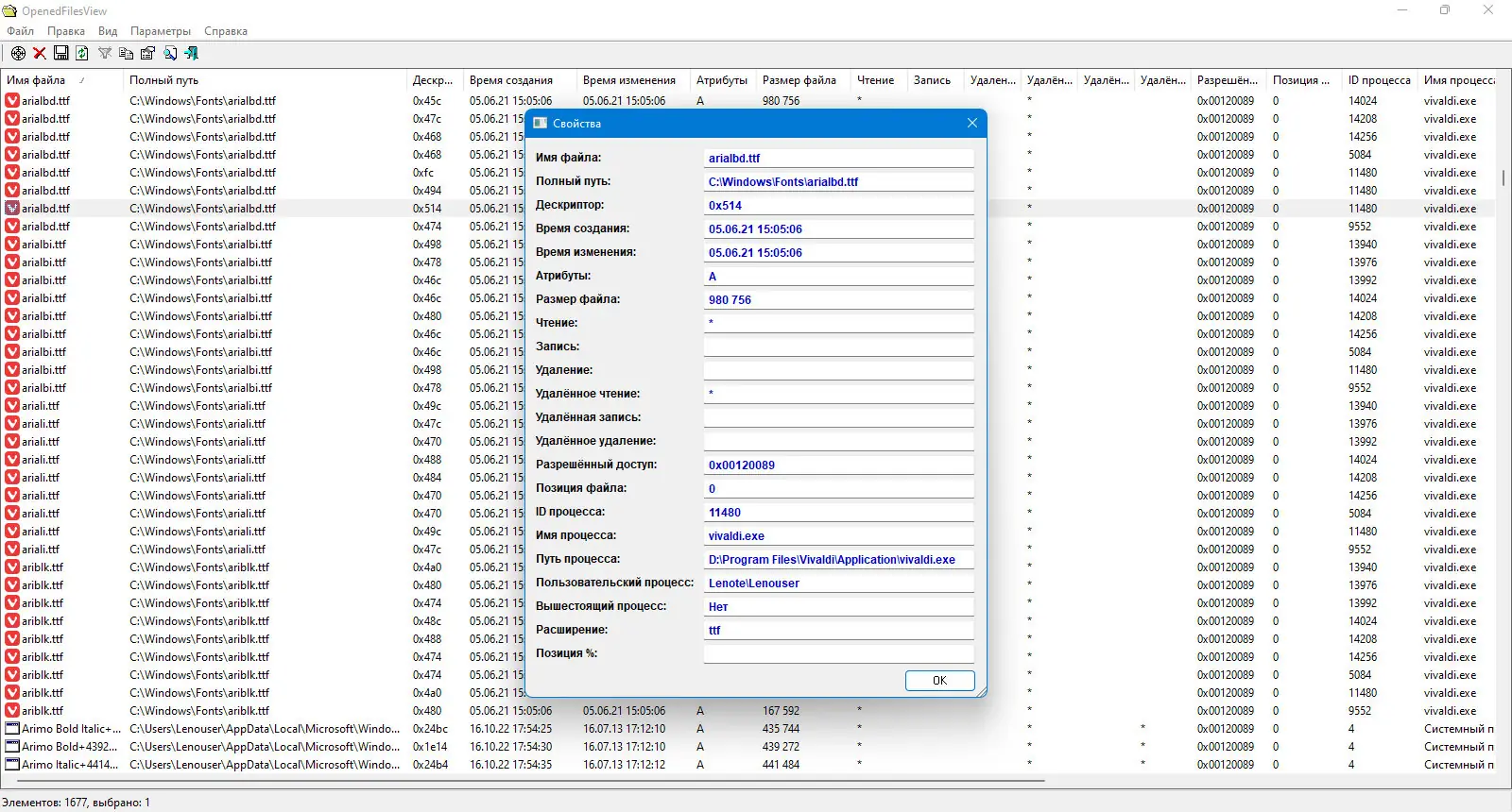 OpenedFilesView — это компактная утилита для отображения всех файлов, открытых в системе на текущий момент. Программа предоставляет детальную информацию о каждом активном файле, включая процесс, его использующий, права доступа, дескриптор и путь к файлу. Это помогает быстро выявить, какое приложение блокирует нужный файл, и решить проблему с удалением или изменением.