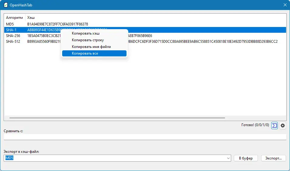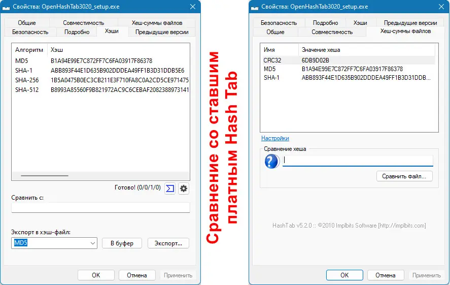 OpenHashTab — это надёжный инструмент для проверки целостности данных, подходящий как для обычных пользователей, так и для системных администраторов. Программа легко настраивается, поддерживает множество форматов и алгоритмов, а также обладает гибкими возможностями экспорта и сравнения хешей. Её можно использовать для верификации дистрибутивов, архивов и других важных файлов. Поддержка многоязычного интерфейса и адаптация под высокое разрешение экрана делают работу комфортной. Утилита распространяется бесплатно и не содержит рекламы или нежелательного ПО.
