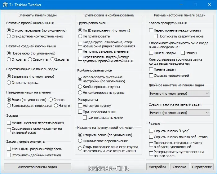 Работа с 7+ Taskbar Tweaker