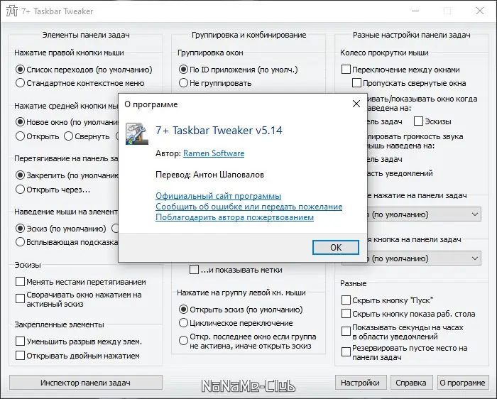 Описание 7+ Taskbar Tweaker
