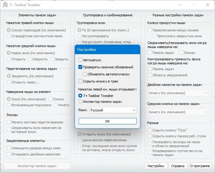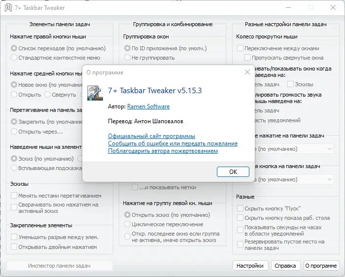 Работа с 7+ Taskbar Tweaker