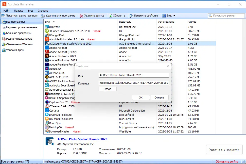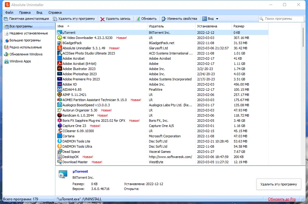 Программа Absolute Uninstaller разработана как альтернатива встроенному механизму удаления программ в операционной системе Windows. Она не только удаляет приложения, но и проводит глубокую очистку, устраняя следы программ, которые остаются после деинсталляции. Это включает временные файлы, папки в AppData, записи в реестре и другие компоненты, которые могут со временем замедлять работу компьютера.