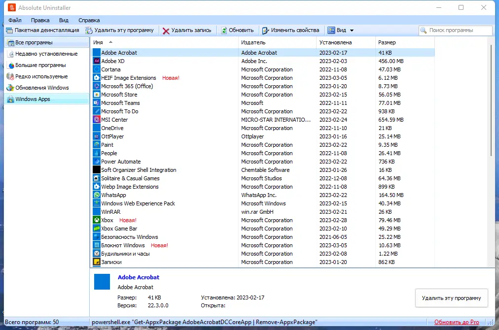 Absolute Uninstaller — это продвинутый инструмент для полного удаления программ с компьютера, способный очистить систему от остатков приложений, мусорных файлов и недействительных записей в реестре. В отличие от стандартного деинсталлятора Windows, он обеспечивает более глубокую и эффективную очистку, улучшая производительность системы и освобождая дисковое пространство.