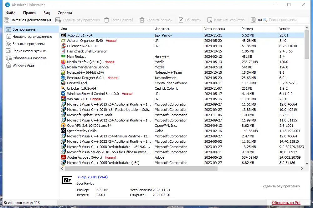 Абсолютный удалитель сочетает в себе мощный функционал и простоту использования, что делает его полезным инструментом для повседневной оптимизации системы. Он эффективно справляется с задачей полного удаления программ, включая те, которые стандартные средства не могут корректно деинсталлировать. При этом программа остаётся лёгкой и не нагружает систему в фоновом режиме.
