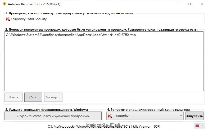 Как пользоваться Antivirus Removal Tool