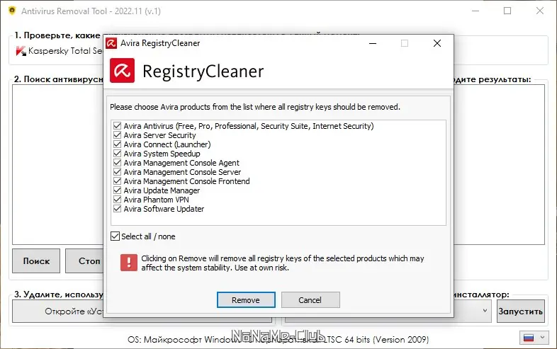 - Содержит только официальные утилиты удаления от разработчиков антивирусов.