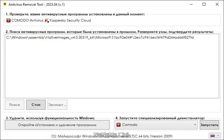 Работа с Antivirus Removal Tool