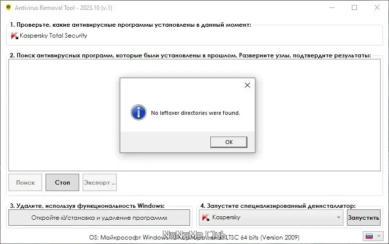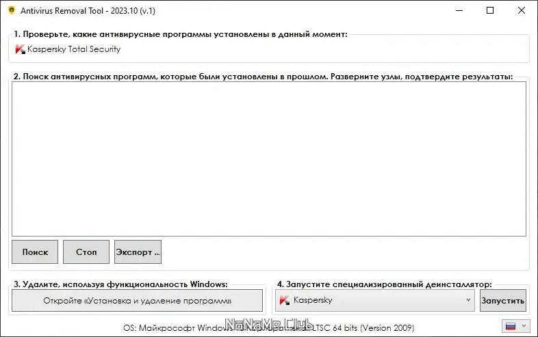 Работа с Antivirus Removal Tool