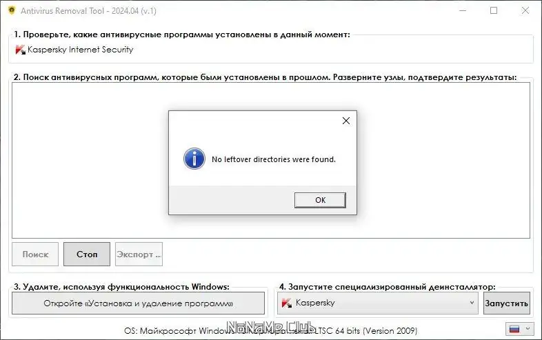 - Включает официальную утилиту для удаления kaspersky и других известных брендов.