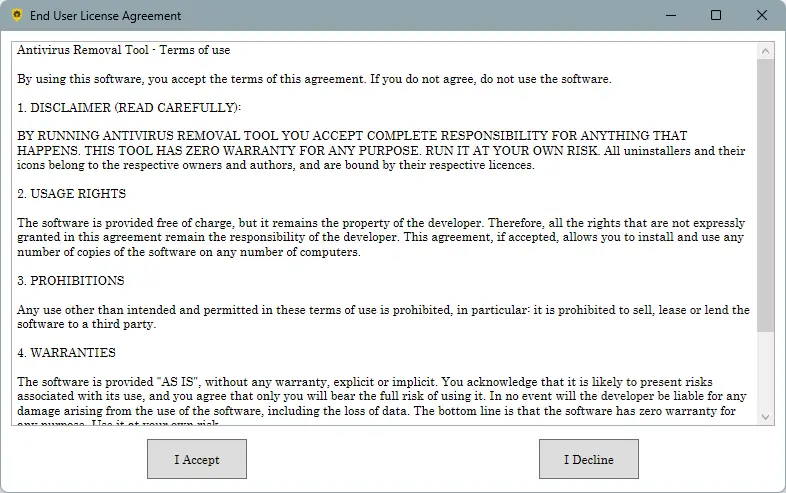 - Не обновляет встроенные утилиты автоматически — требуется периодически обновлять сам Antivirus Removal Tool.