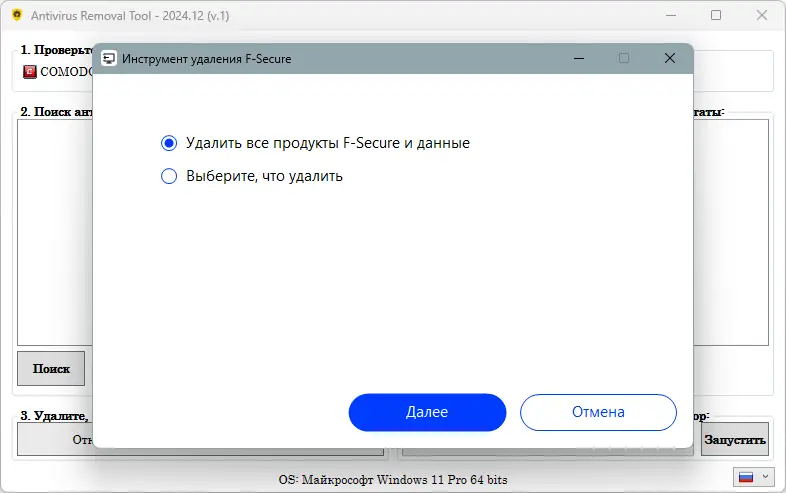 Работа с Antivirus Removal Tool