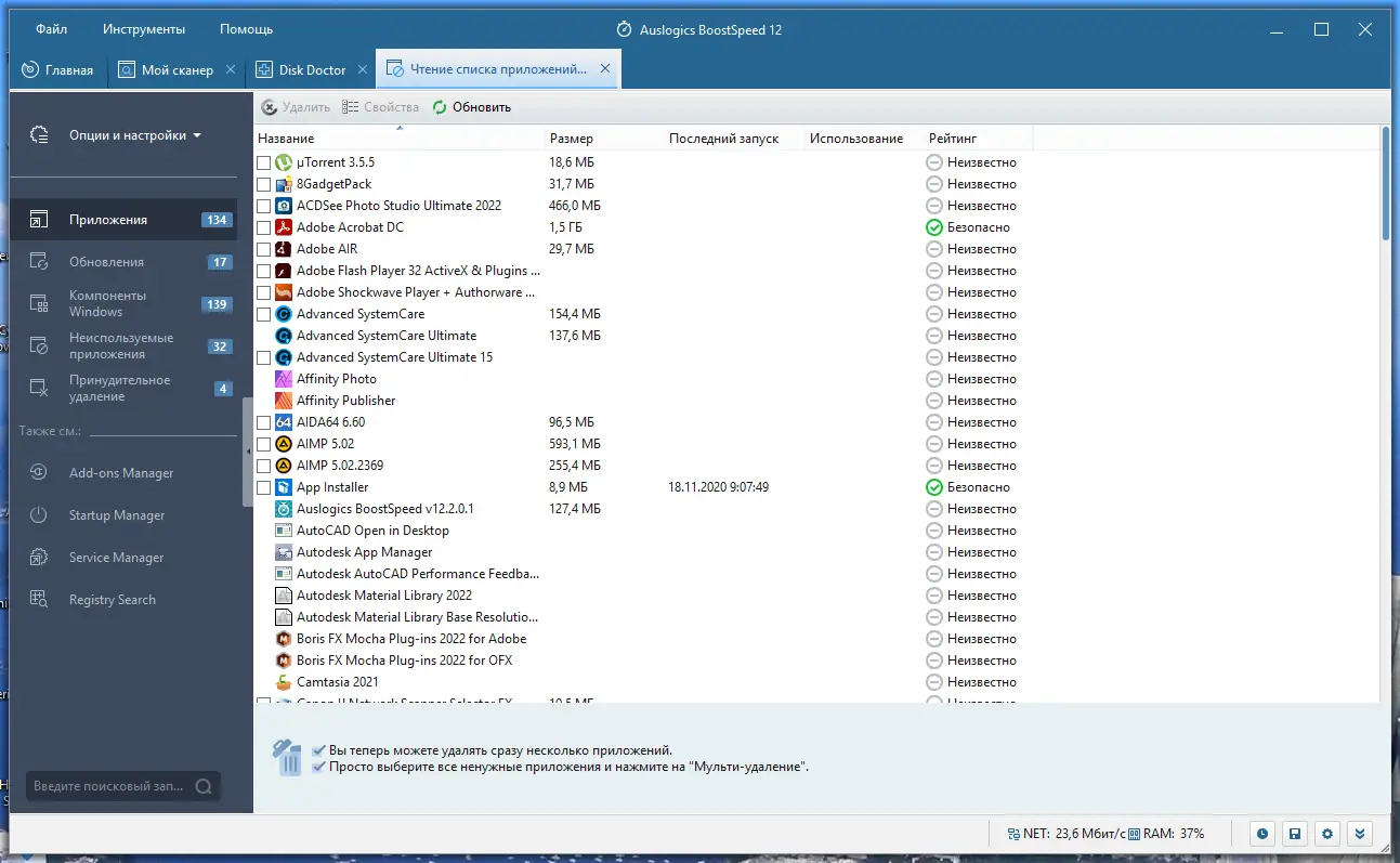 Auslogics BoostSpeed — это многофункциональный инструмент для комплексной оптимизации операционной системы Windows. Программа помогает ускорить работу компьютера, очистить систему от временных файлов, дефрагментировать диски и реестр, а также улучшить производительность интернет-подключения. Благодаря интуитивному интерфейсу и широкому набору встроенных утилит, пользователи могут легко настроить систему под свои нужды и поддерживать её в идеальном состоянии. Решение подходит как для новичков, так и для опытных пользователей, стремящихся повысить стабильность и отзывчивость ПК.