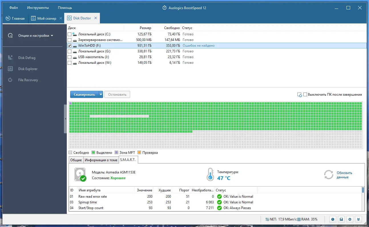Работа с Auslogics BoostSpeed