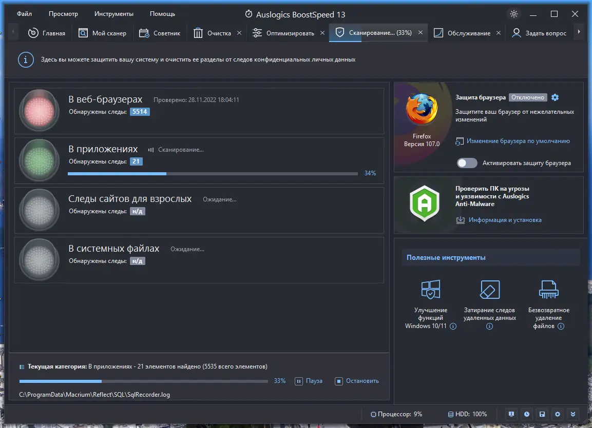 Работа с Auslogics BoostSpeed