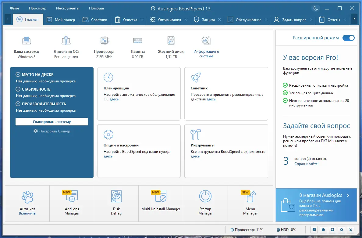 Работа с Auslogics BoostSpeed
