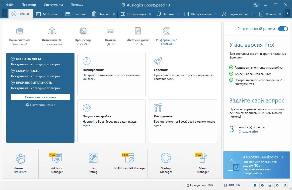 Работа с Auslogics BoostSpeed