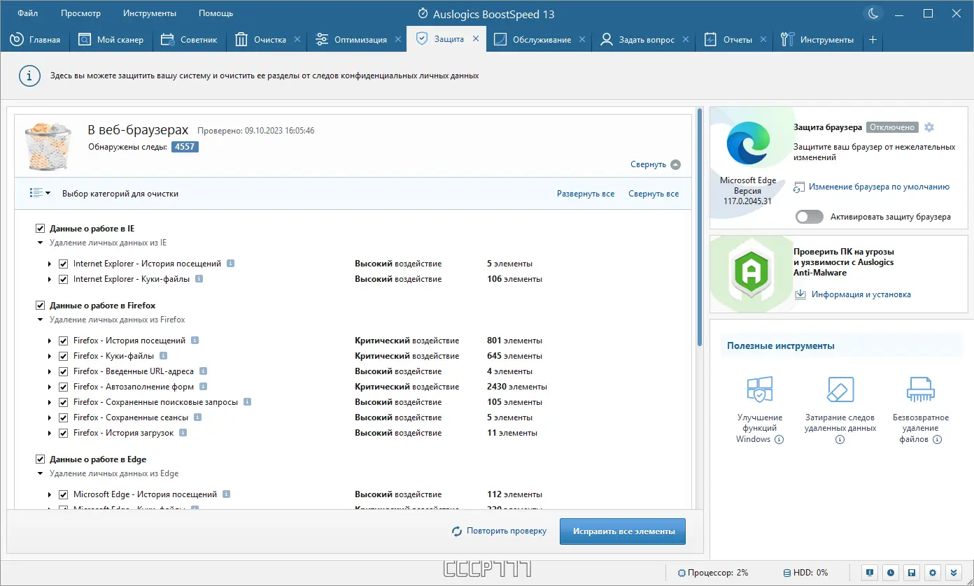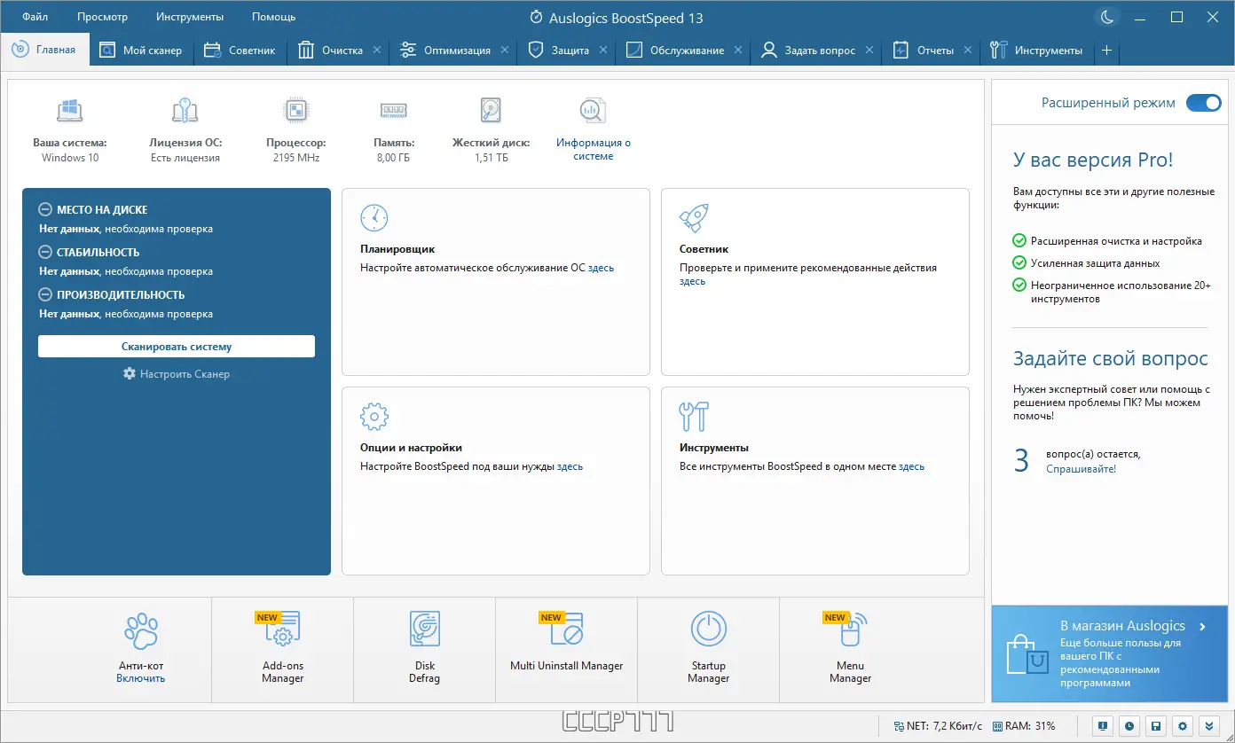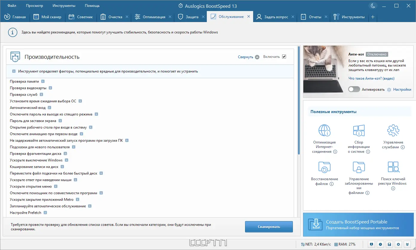 Работа с Auslogics BoostSpeed