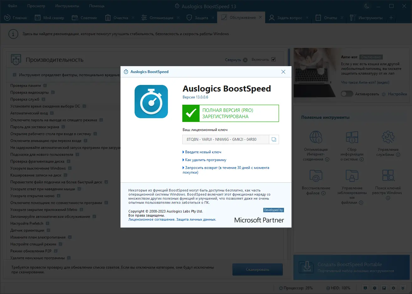 - Полный набор инструментов для обслуживания системы — от очистки реестра до восстановления файлов.