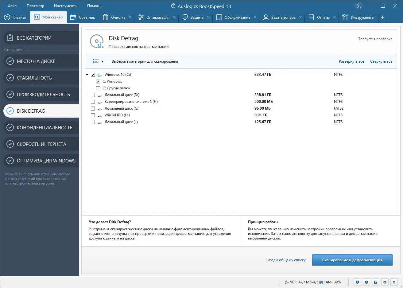Работа с Auslogics BoostSpeed