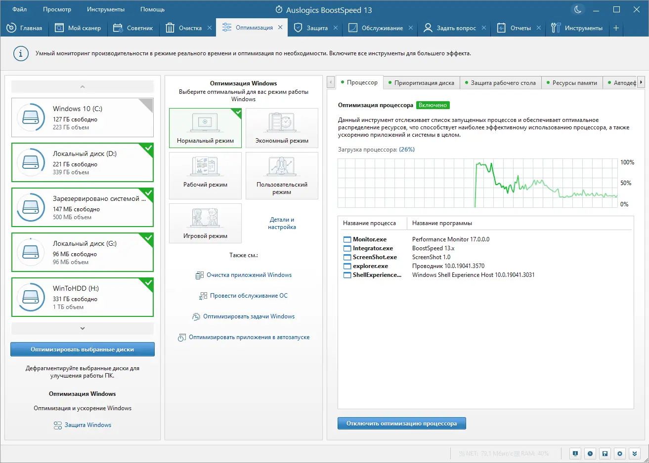 Auslogics BoostSpeed представляет собой многофункциональный пакет для тонкой настройки и обслуживания операционной системы. Он подходит как для новичков, так и для опытных пользователей, стремящихся сохранить высокую отзывчивость компьютера. Интерфейс программы интуитивно понятен, а все инструменты сгруппированы по назначению, что упрощает процесс оптимизации.