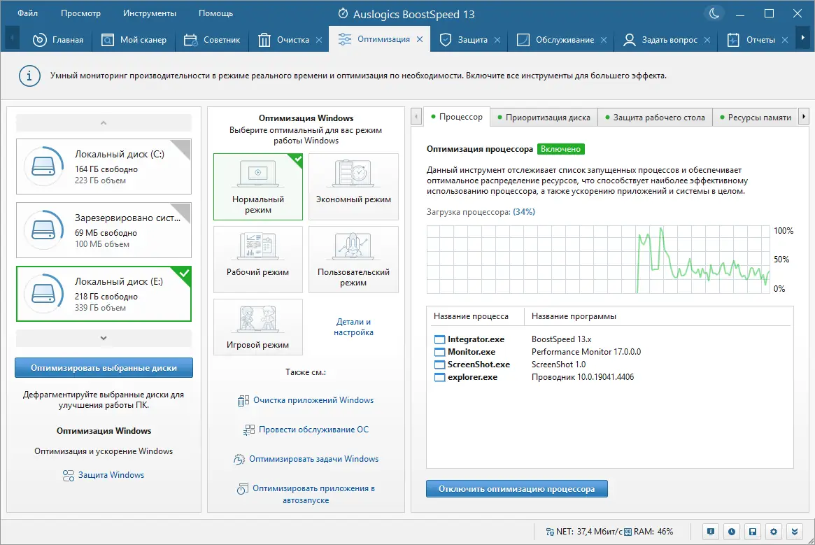 Auslogics BoostSpeed относится к категории системных твикеров и предназначен для глубокой настройки операционной системы Windows. Она объединяет в себе более пятнадцати утилит, каждая из которых решает конкретную задачу — от удаления временных файлов до анализа производительности дисков и управления автозагрузкой.