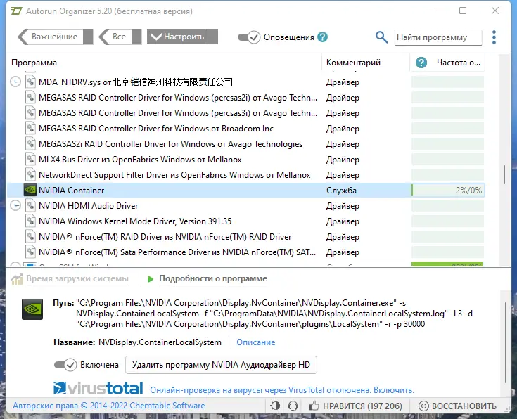 - Интеграция с VirusTotal для проверки подозрительных программ