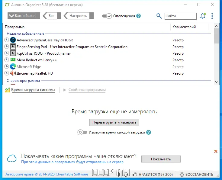 - Ведение журнала загрузки, в котором отображается время, затраченное на запуск системы, и статистика по автозагрузке за последнее время.