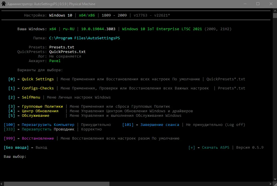 AutoSettingsPS сочетает в себе мощь скриптового подхода и простоту использования, что делает его полезным как для опытных пользователей, так и для новичков, желающих оптимизировать систему. Открытый исходный код позволяет проверить каждую строку кода, исключая наличие скрытых функций или вредоносного поведения. Программа активно развивается — новые версии регулярно улучшают стабильность и расширяют функционал.
