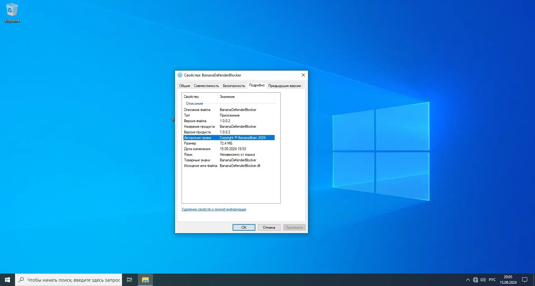 BananaDefenderBlocker доступен для загрузки в виде одного исполняемого файла с известными контрольными хэшами. Перед использованием рекомендуется проверить целостность файла по указанным значениям CRC32, CRC64, SHA1 и SHA256. Программа не содержит вредоносного кода и не изменяет системные настройки без ведома пользователя. Обновление до версии с новым ядром BananaRelax улучшило надёжность определения состояния защиты и повысило совместимость с обновлениями Windows.